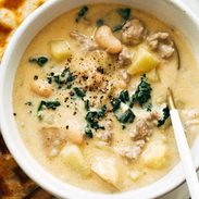 Keywords: sausage soup, sausage and kale soup, sausage and bean soup